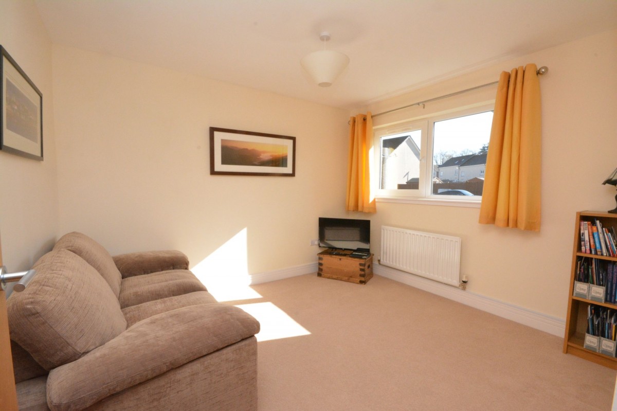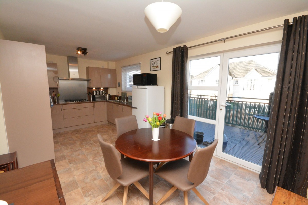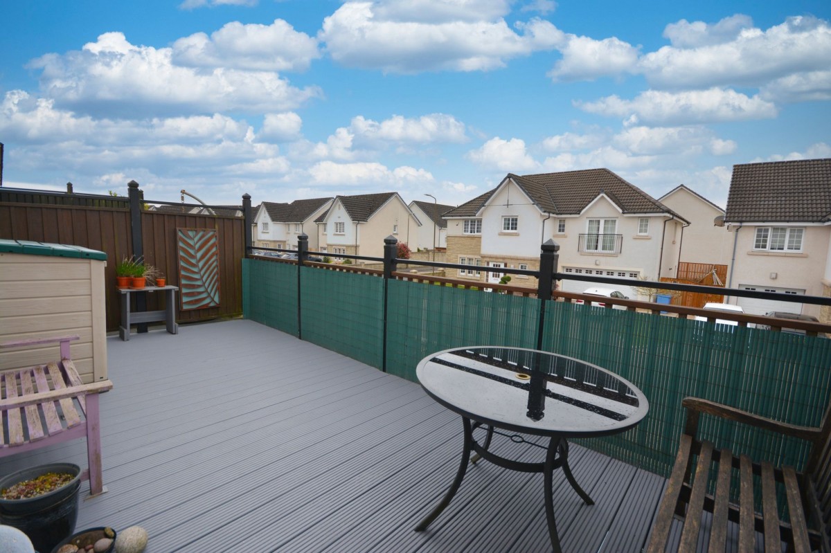 Stylish Cala built larger style luxury town house set within the prestigious Kinnaird Village development in much sought after Larbert. The property is situated conveniently for access to many excellent surrounding amenities including Kinnaird Primary School, Larbert Rail Station and surrounding road and motorway network which proves popular with commuters. The property enjoys the benefit of a private front garden and superb westerly facing first floor sun deck which extends to in excess of twenty one feet in length and offers ideal outdoor sitting and entertainment space. The blocked paved rear driveway provides two car wide parking for several vehicles and access to a generously sized integral garage with courtesy door to the utility room.