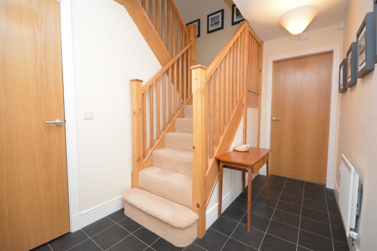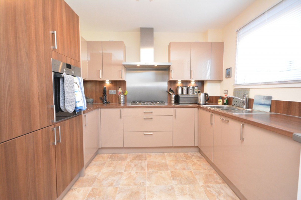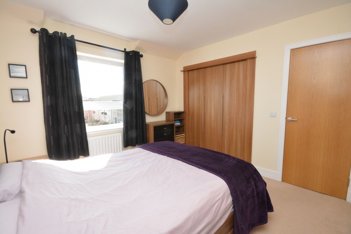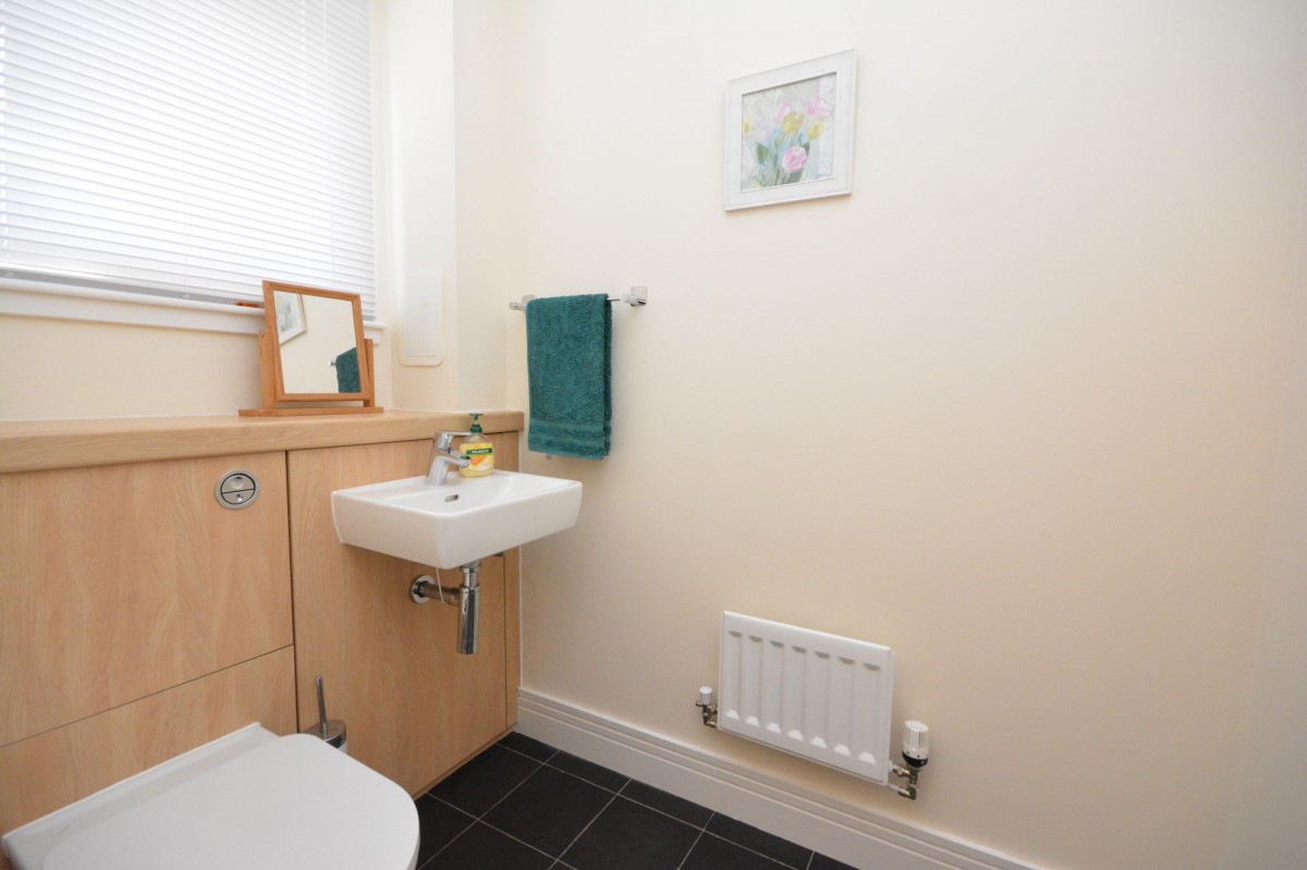 Stylish Cala built larger style luxury town house set within the prestigious Kinnaird Village development in much sought after Larbert. The property is situated conveniently for access to many excellent surrounding amenities including Kinnaird Primary School, Larbert Rail Station and surrounding road and motorway network which proves popular with commuters. The property enjoys the benefit of a private front garden and superb westerly facing first floor sun deck which extends to in excess of twenty one feet in length and offers ideal outdoor sitting and entertainment space. The blocked paved rear driveway provides two car wide parking for several vehicles and access to a generously sized integral garage with courtesy door to the utility room.